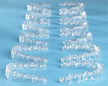 - einfach einsetzbare, komfortabel tragbare dünne, transparente Zahnschienen (z.B. Invisalign®)